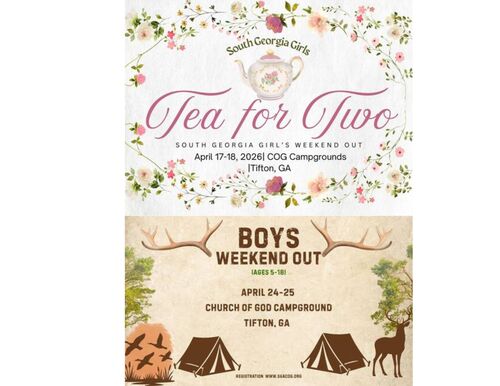 Girls and boys of all ages are encouraged to participate in Girls Weekend Out (April 17 & 18) and Boys Weekend Out (April 24-25). Click the links below for more information and to register. Or see Pastor Buddy or Ms. April - they'll be happy to help!
